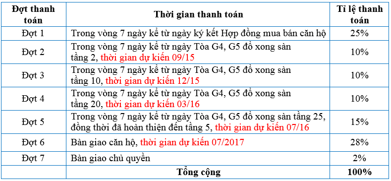 Tiến độ thanh toán tòa G4 & G5 Five Star Kim Giang
